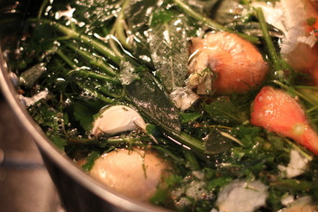 My grandma taught me that wasting food was a Cardinal sin – and really, why do it? That said, there were always some things that found their way into the compost bucket instead of our bellies, and it bothered me. Then I realized that there wasn’t any reason to compost all the onion ends, extra celery stalks, the going-woody carrots, past-its-prime garlic, and meat trimmings. If I kept them until I had enough for stock, there would be practically no waste.